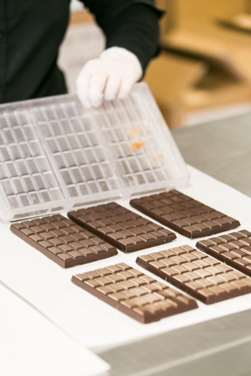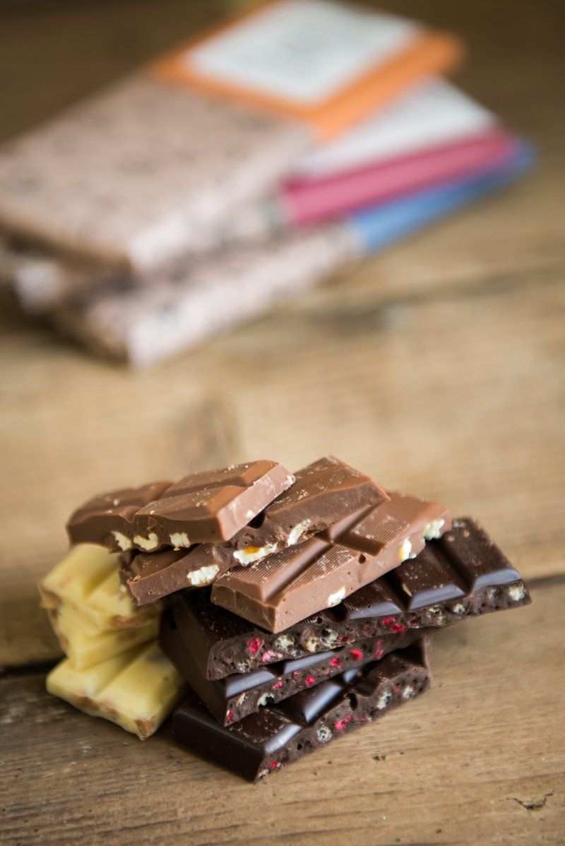 Nos chocolats sont produits manuellement à Amsterdam, par Hans Mekking, chocolatier de l’atelier de chocolat Urban Cacao, qui utilise le meilleur chocolat belge de Callebaut : noir, au lait et blanc. Ensemble, nous avons recherché les meilleurs ingrédients à associer avec ces chocolats. Des ingrédients 100% naturels, bien sûr, comme les framboises, les amandes et le popcorn. Le résultat ? Trois merveilleuses et surprenantes tablettes de chocolat aux saveurs inédites.