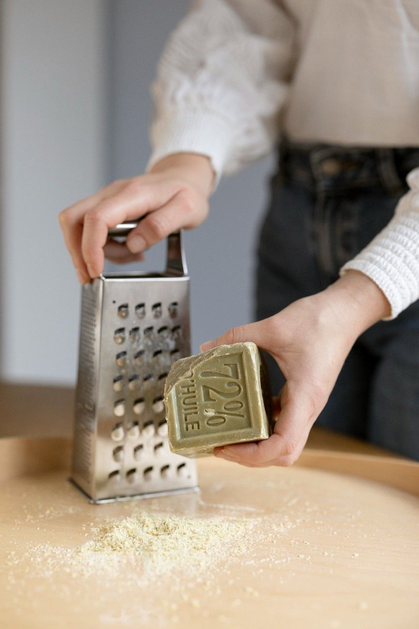 Un cube de savon de Marseille, à base de 72% d'huile d'olive, est idéal pour fabriquer sa propre lessive. Le savon est ultra efficace contre la saleté et doux pour les peaux sensibles !