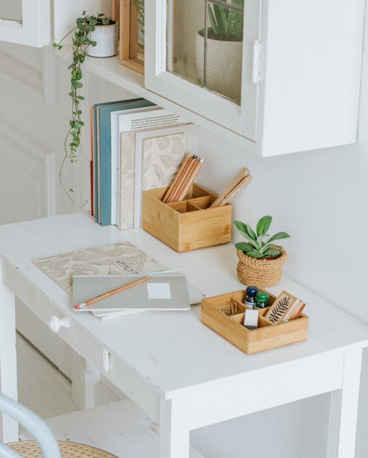 Lorsque vous travaillez régulièrement à la maison, il est agréable de garder un bureau ordonné. Nos contenants empilables en bambou conviennent à merveille pour le rangement de tous ces petits objets qui encombrent nos bureaux. Pour le rangement de vos crayons et marqueurs, optez plutôt pour le modèle à bord haut.