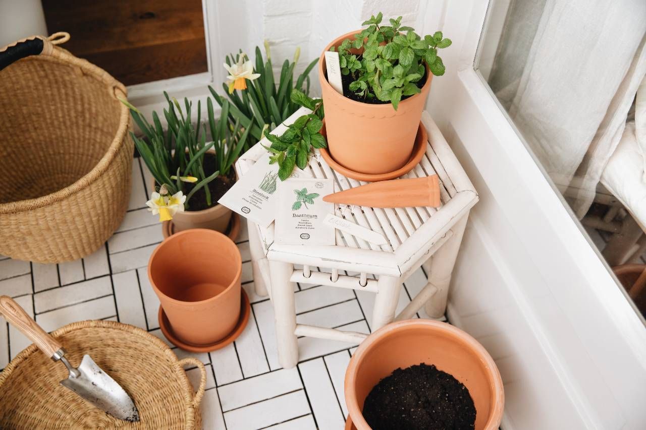 Si vous souhaitez vous lancer modestement, je vous recommande vivement de commencer par un potager d'herbes aromatiques, dans votre jardin, mais aussi dans des pots, tout simplement : même les balcons les plus petits pourront accueillir quelques pots d'herbes aromatiques. Vous pouvez semer les herbes vous-même, en utilisant par exemple les graines de Dille & Kamille. Au dos des sachets, vous trouverez des instructions pour réussir vos semis. Vous pouvez également opter pour des plantes aromatiques biologiques. Quel que soit votre choix, semez ou plantez toujours les herbes dans un pot avec un trou au fond et utilisez un terreau sans tourbe. Les herbes méditerranéennes, comme le romarin, la sauge, le basilic, l'origan et le thym, se plairont sur un balcon ensoleillé. Si votre balcon n'est pas fort ensoleillé, optez pour de la ciboulette, de la menthe et du persil, par exemple. Pour ce qui est de l'arrosage, utilisez un irrigateur de plantes qui délivrera l'eau goutte à goutte. De cette façon, la plante régule sa propre absorption d'humidité et vous ne risquez pas de donner trop d'eau.