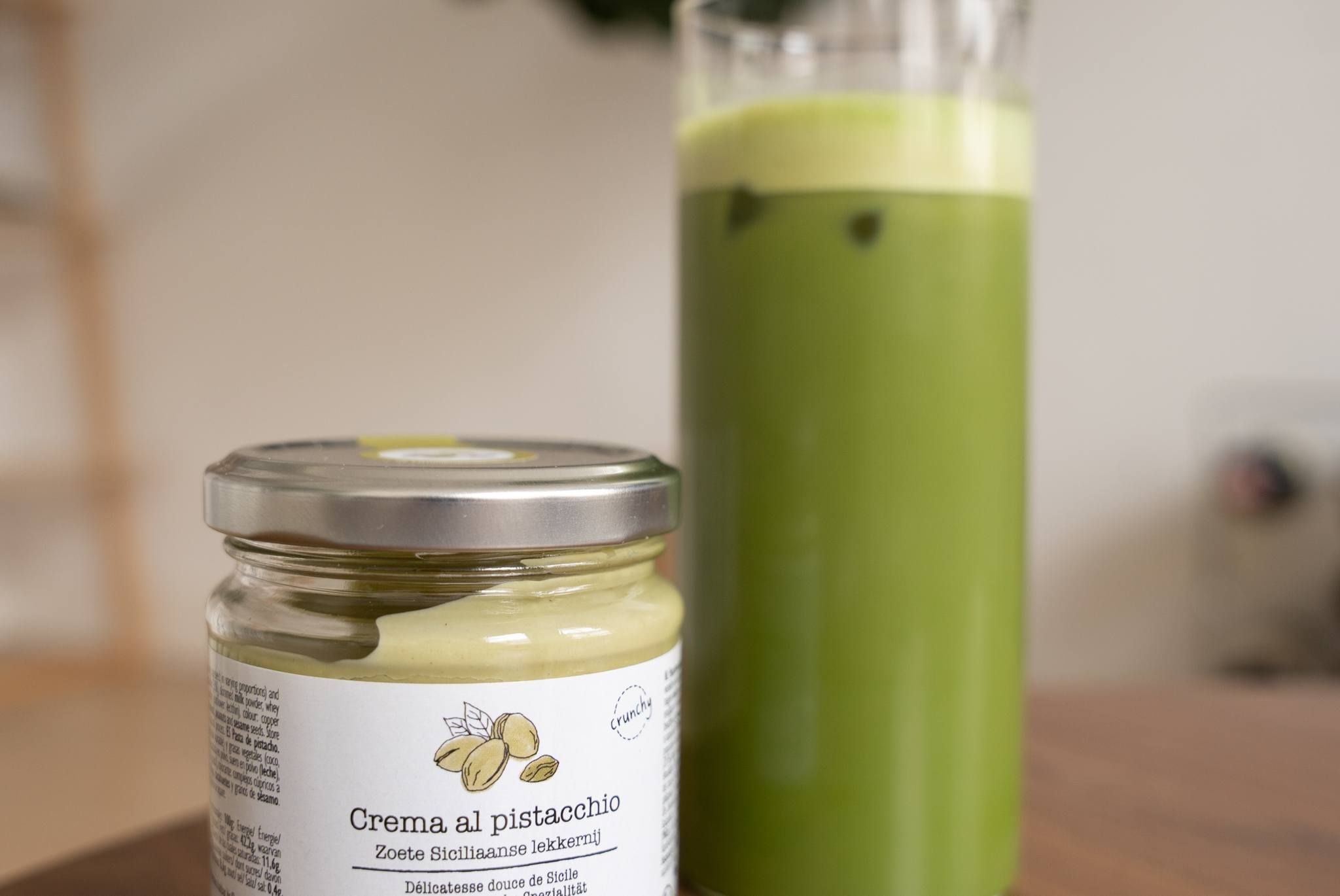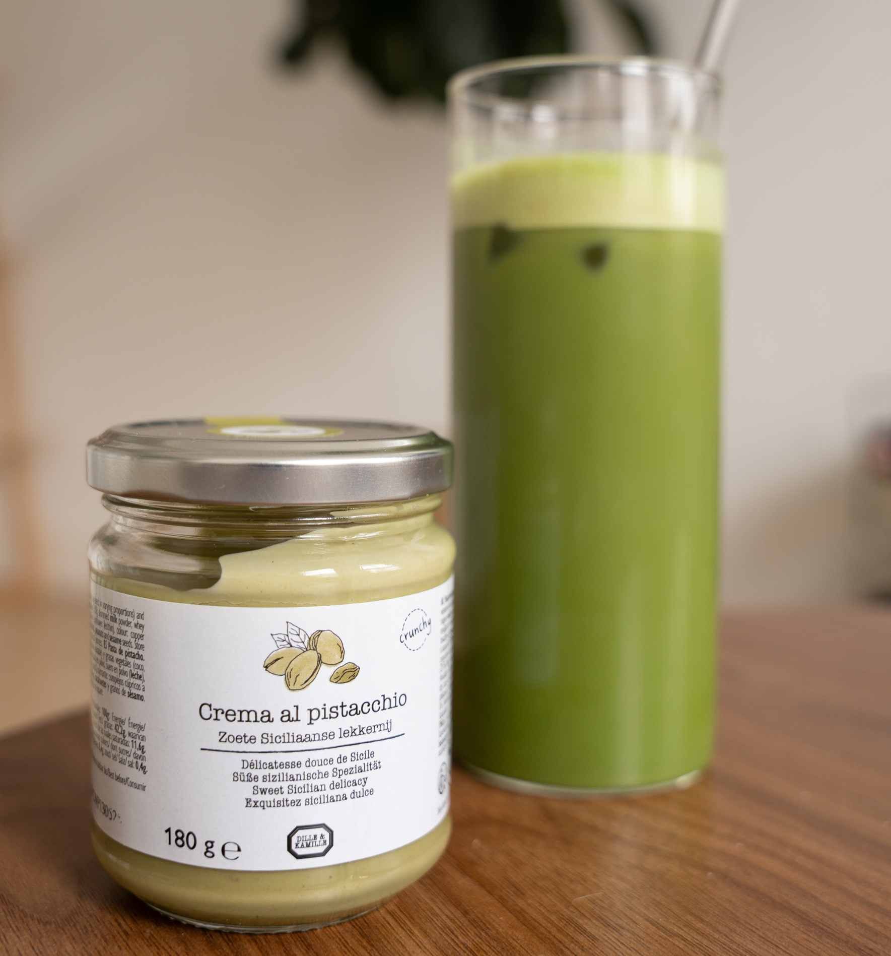 - Mettez une cuillère de crème de pistache dans un verre ou un mug.