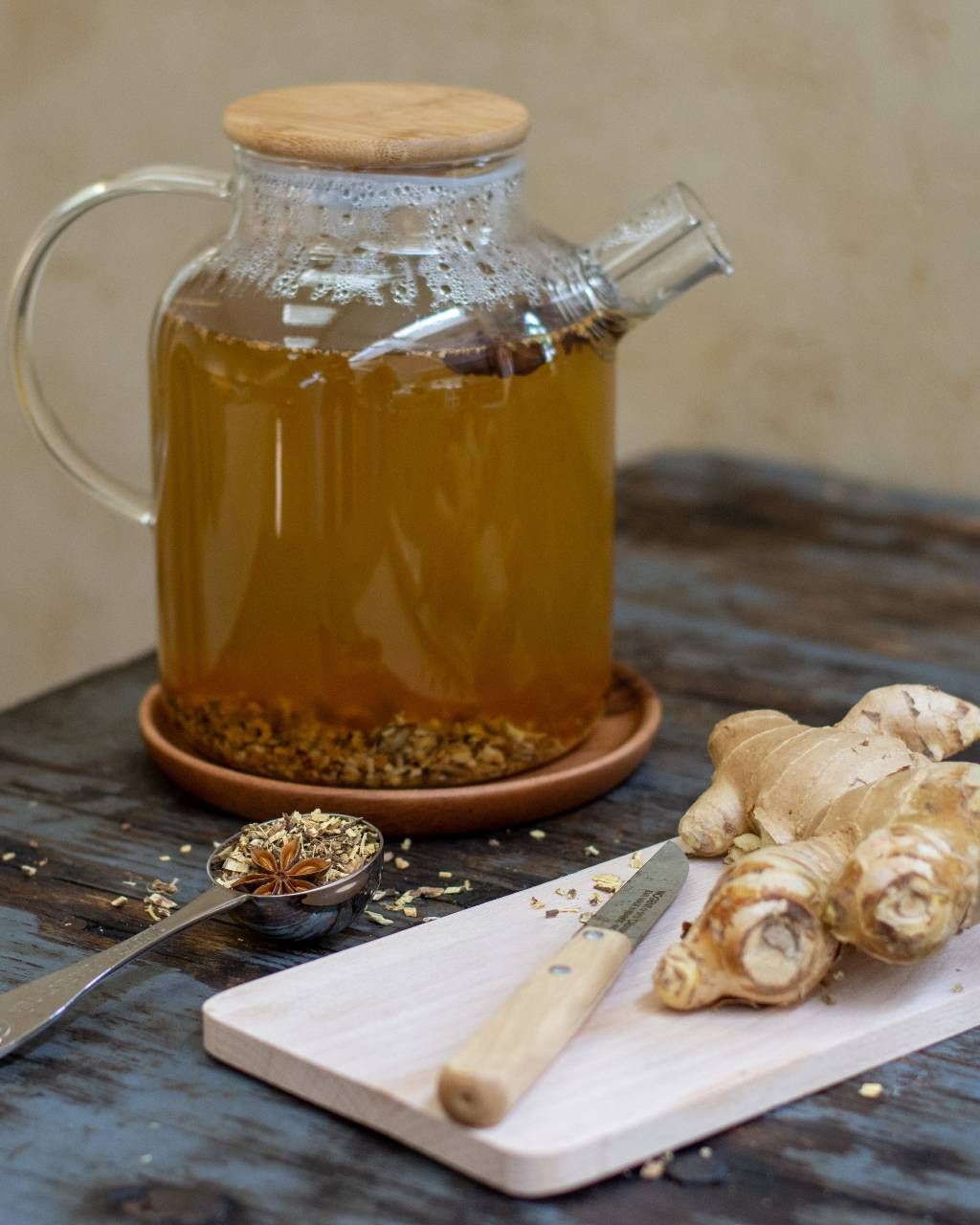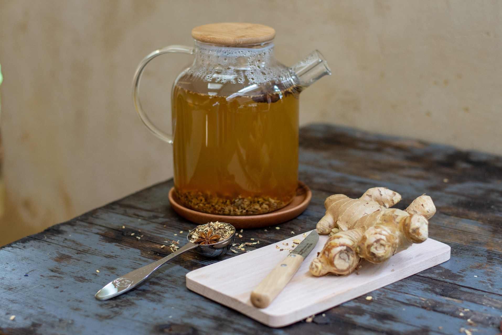 - Mettez le gingembre, la réglisse et les étoiles d'anis dans la passoire à thé.