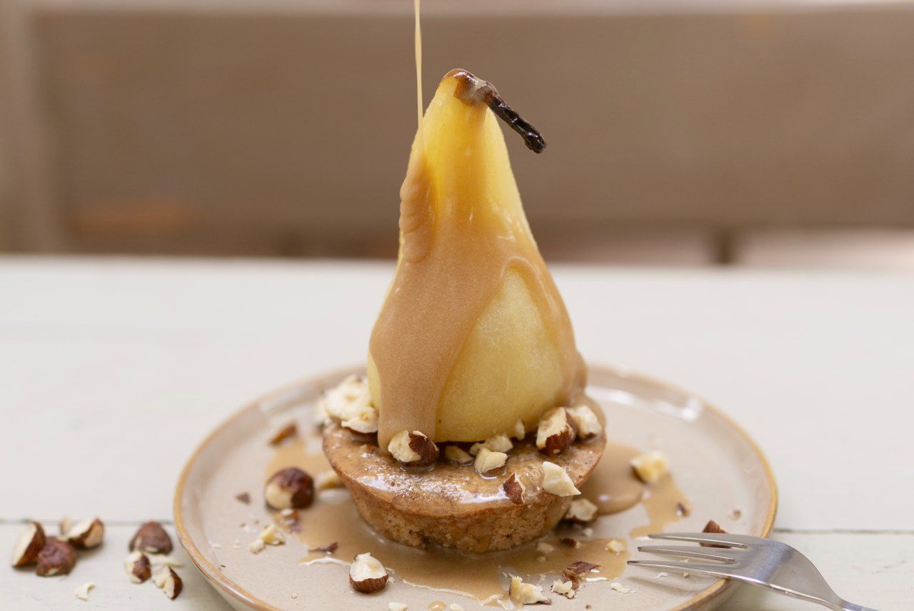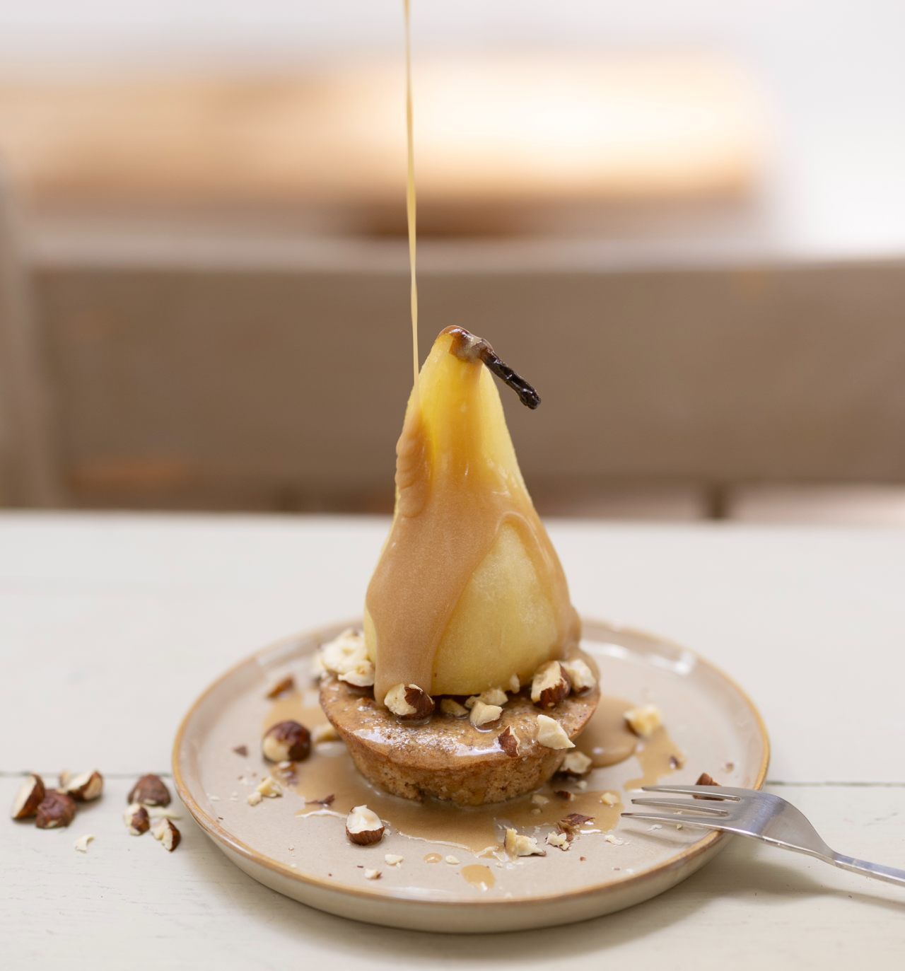 - Versez la sauce expresso sur les poires pochées et autour des cupcakes à la cardamome.