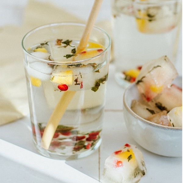- Mettez un peu de menthe poivrée dans chaque compartiment du moule à glaçons. Répartissez