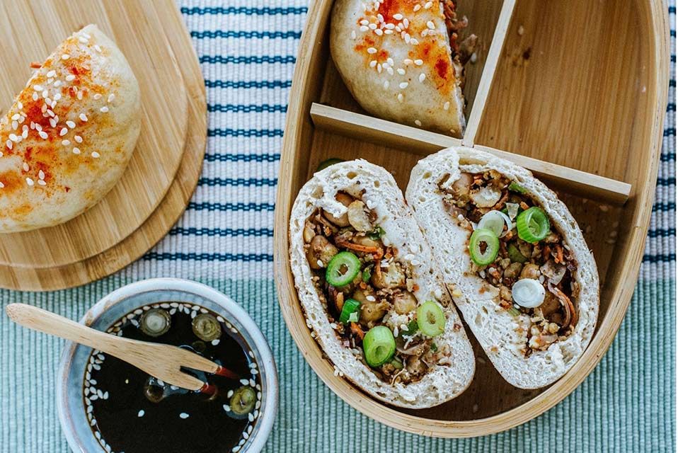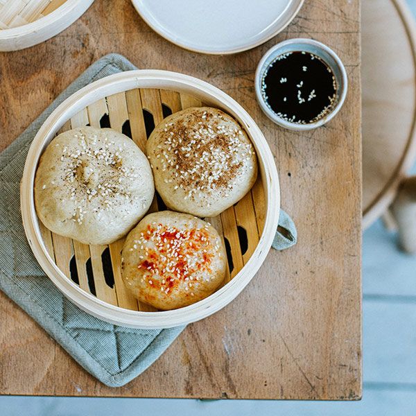 pendant encore 45 minutes. - Placez le panier vapeur dans une casserole avec un peu d'eau, déposez-y les petits pains bao -