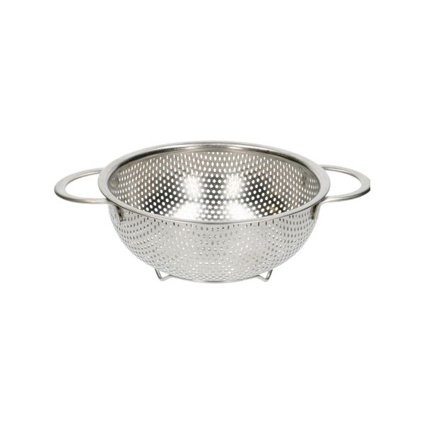 Passoire en acier inoxydable dotée de 2 poignées. Petit format. La passoire est percée de trous sur toute sa surface, permettant d'égoutter rapidement une salade, des légumes, des fruits, etc. Dotée de 3 pieds, l'eau s'écoule plus facilement.
