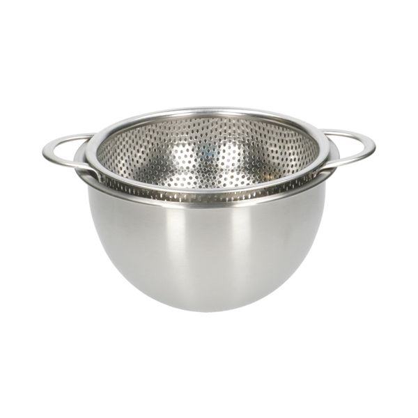 Astuce : la passoire s'adapte à notre bol mélangeur en acier inoxydable de Ø16 cm. Cela permet de gagner de la place dans le placard de la cuisine.
