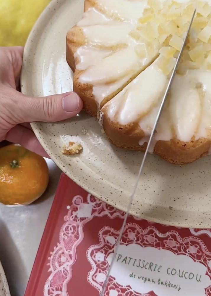 - Glazuur: Meng de poedersuiker en sinaasappelsap tot een dik, wit glazuur. Giet of bestrijk het glazuur over de afgekoelde cake en versier met gekonfijte sinaasappel.