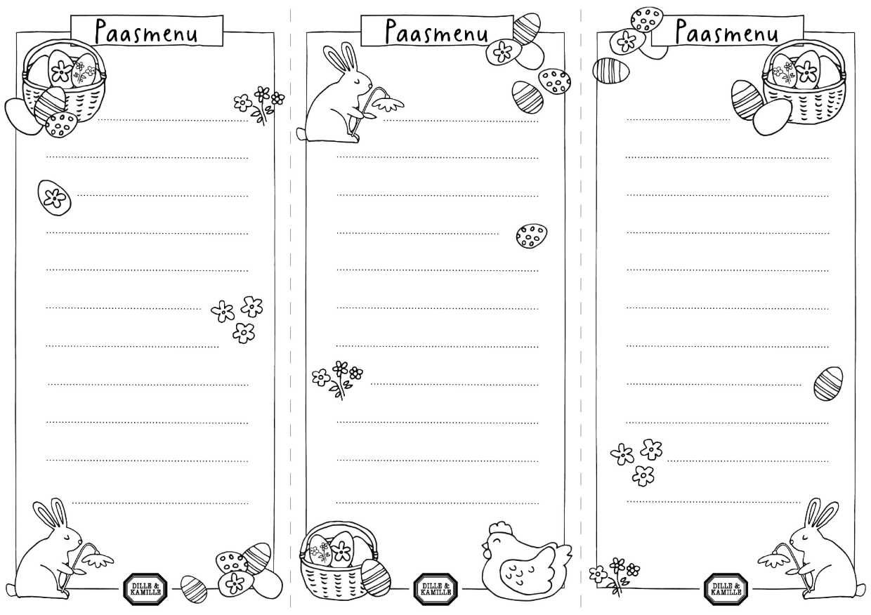 Ga je deze Pasen heerlijk ontbijten of brunchen? Schrijf de verschillende gerechten en hapjes op onze menukaartjes en kleur ze (samen met de kinderen) mooi in. Zo kan iedereen zich verheugen op al het lekkers!