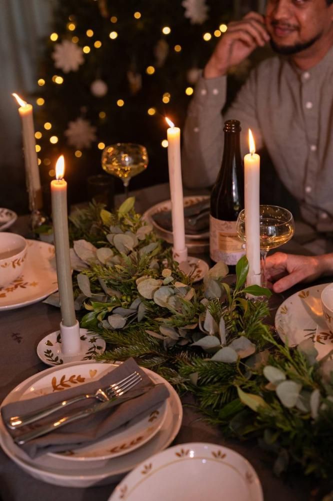 - Breng de natuur in huis met takjes kerstgroen en schik ze als een slinger in het midden van de tafel. Of maak een kerstukje.