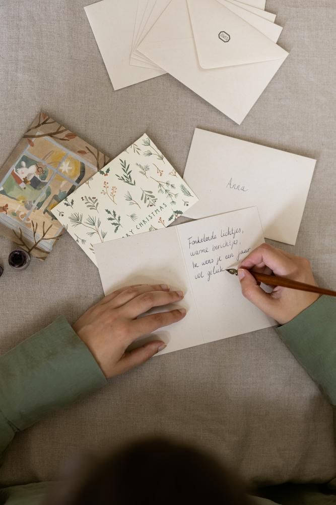 Pak een vulpen en inkt en schrijf - in je mooiste handschrift - een persoonlijke boodschap op een lief kerstkaartje of een cadeaulabel. Met leuke kerststickers maak je je kaartje nog mooier.