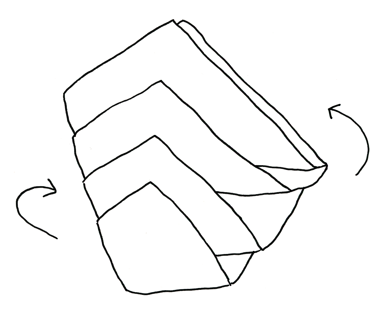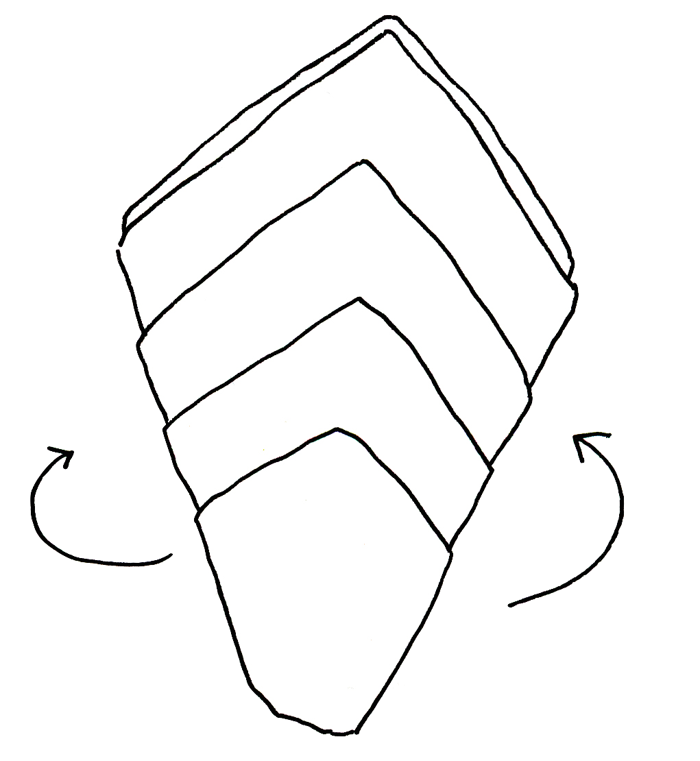 Stap 6: Vouw nu ook de andere 2 lagen op deze manier, de punt van het bovenste servet is steeds een stukje lager als die ervoor.