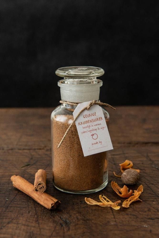 Een ‘spicy’ mix waar je het lekker warm van krijgt! Verhit appelsap, glühwein of cider en voeg kruidensuiker toe naar smaak. Goed roeren en genieten!