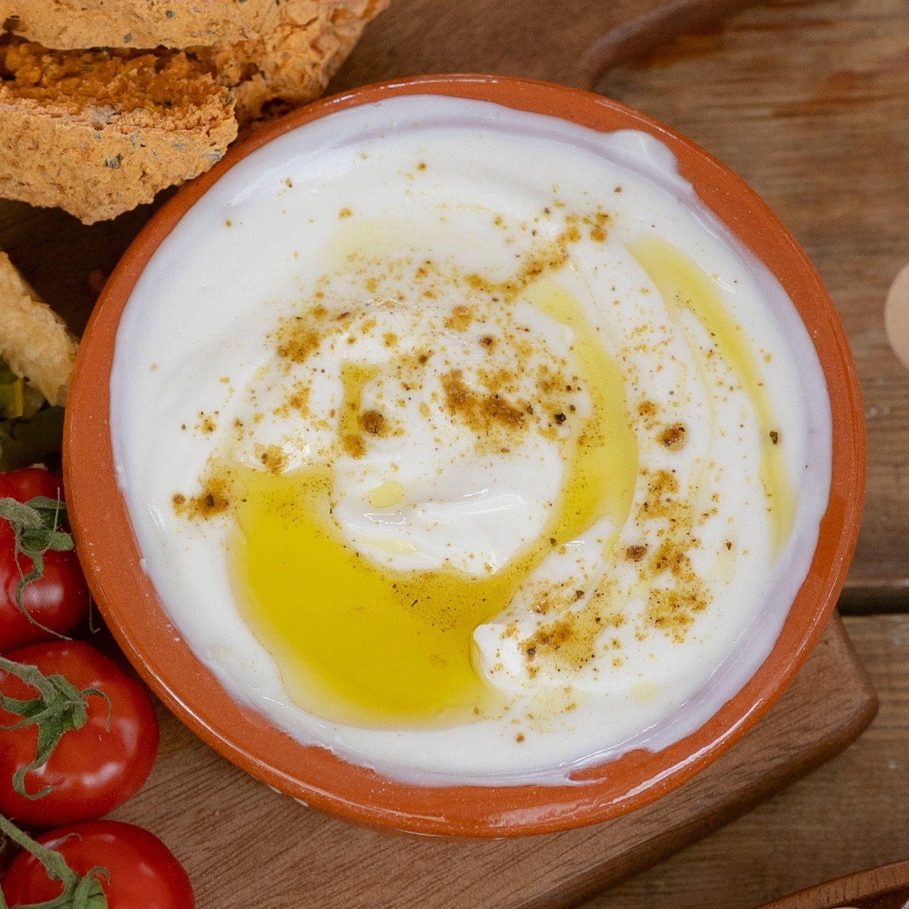 - Serveer de labneh met olijfolie, breng op smaak met peper en zout en meng er eventueel specerijen door.