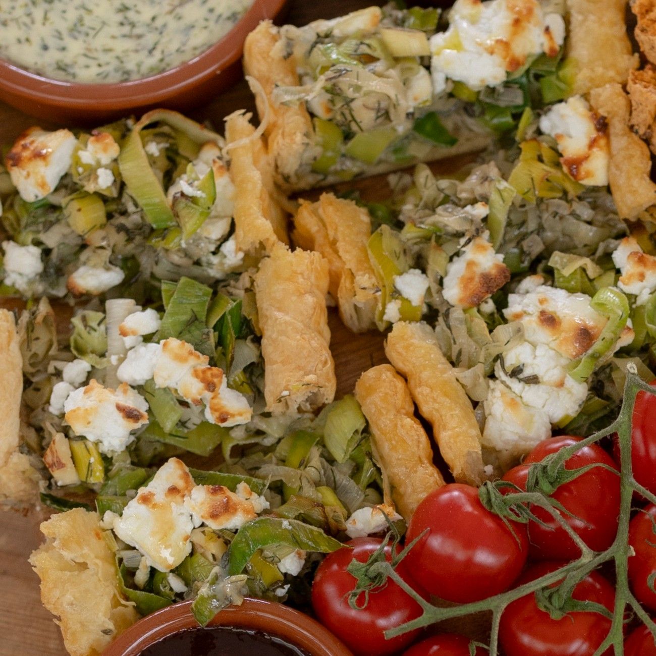 Quiche met prei, zachte geitenkaas en hazelnoten