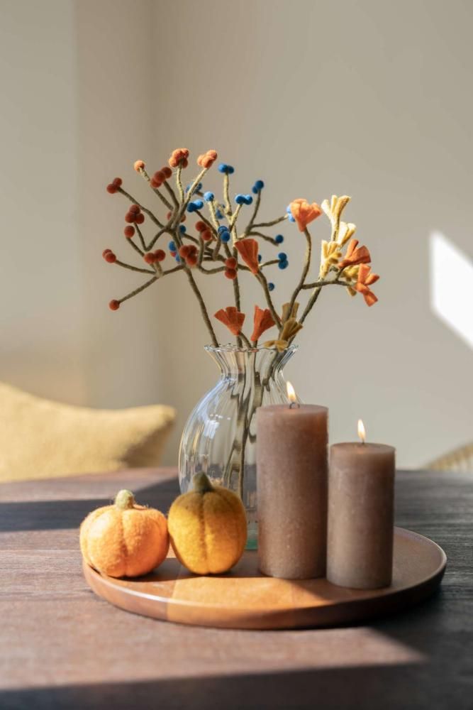De herfst is hét seizoen om het weer knus en gezellig te maken in huis! Met onze herfstdecoratie, vilten hangers, kaarsen en je eigen vondsten uit de natuur maak je mooie herfsttaferelen op de vensterbank, het dressoir en bijzettafeltjes.