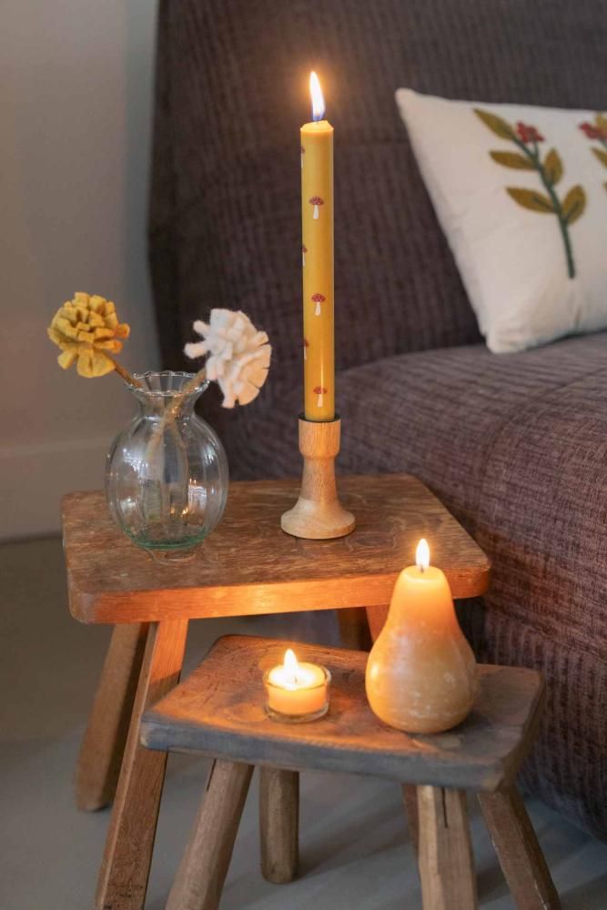 - Kies een mooie plek om je herfsthoekje te maken, bijvoorbeeld in de vensterbank, op een kaarsenplateau, groot dienblad of op een tafeltje. Voor een extra leuk effect kan je als basis ook een krukje gebruiken.