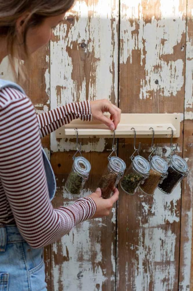 Van hout, S-haken en beugelpotjes maak je zelf een handig kruidenrekje, speciaal voor ons ontworpen door 50|50 Wood! Aan het rekje is plek voor zes potjes, maar je kunt het natuurlijk ook groter maken en bovenop het plankjes is ook nog ruimte voor nieuwe kruidenpotjes. Of iets anders natuurlijk, zoals een flesje olijfolie, pepermolen of een kleine maatbeker. Deze DIY is voor ons ontwikkeld door 50|50 Wood, bekijk hier hoe je hem maakt!