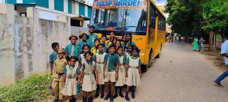 Tulip Garden heeft zelfs een eigen schoolbus met chauffeur, die dagelijks op en neer rijdt naar de scholen en beroepsopleidingen. Ook neemt de schoolbus van Tulip Garden met regelmaat kinderen mee uit de omliggende dorpen om hen naar school te brengen.